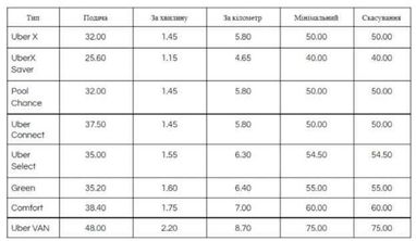 Полностью узнать новые тарифы Убер можно в этой таблице: