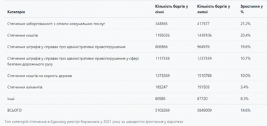 За первые полгода 2021-го в Едином реестре должников Украины появилось более 700 тысяч новых долгов.