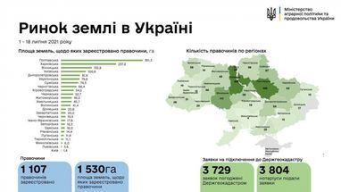 По состоянию на 19 июля Министерство аграрной политики и продовольствия Украины зарегистрировало 1107 сделок купли-продажи 1530 га земли сельскохозяйственного назначения.