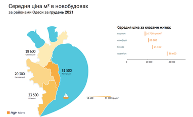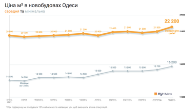 В Одесі, після доволі стабільної осені, стався стрибок у ціні на 700 грн – до 22 200 грн за квадратний метр (в середньому). На 500 грн виросла і мінімальна вартість житла – до 16 200 грн.